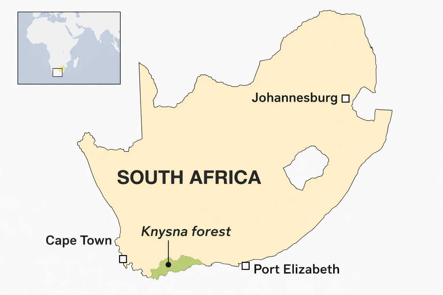 The otang inhabits the Knysna Forest in South Africa. This is an afro montane forest in the very southern end of the country,