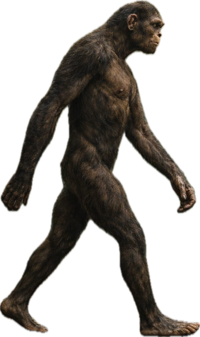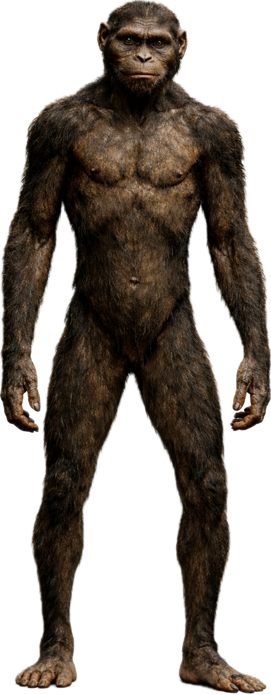 The otang is described as having dark brown hair covering the body and athletically built. Its face is said to look like a mix between a human and an ape, much like an Australopithecus. Its footprints look similar to a human’s and lacks a divergent hallux.
